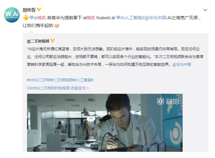 近日據(jù)域名投資人@劉傳哲在微博上的曝料,華為公司已經(jīng)提前拿下.ai域名 huawei.ai。目前域名已經(jīng)設置跳轉到華為的官網(wǎng)huawei.com。