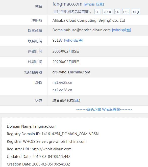 域名fangmao.com、fangmao.com.cn超12萬易主終端!