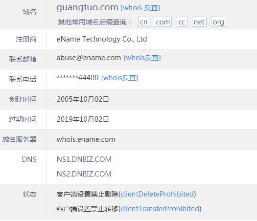 查詢發現guangtuo.com注冊于2005年10月,至今已有將近14年的時間,從含義上看,guangtuo.com有“廣拓、光托、光拓、廣拖、廣托、廣坨、廣駝”等含義,建站上沒有明確的行業指向,在應用上適用于光纖、云計算、電子設備、社交等行業,具有很高的投資價值和商業應用價值。比如“廣拓”這個含義,就對應廣拓電子圍欄、廣拓網絡、廣拓生物等終端。