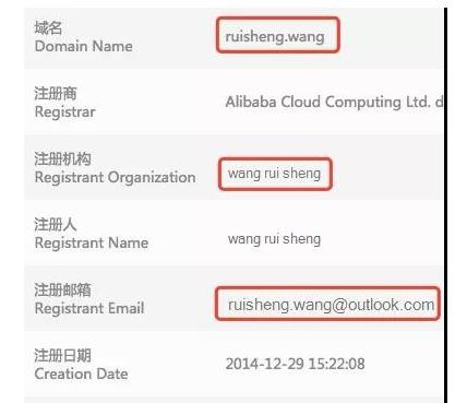買家是誰呢?查詢whois信息顯示,注冊人和注冊機構都是wang rui sheng,注冊郵箱是ruisheng.wang@outlook.com。完全和今天成交的域名ruisheng.wang一模一樣。可見,買家完全是沖著自己的名字去買了這個域名的。拼音+.wang 更符合中國人的閱讀習慣,不少網友用拼音域名搭建了自己的博客,如果網站域名和人的名字一樣好記,反而會讓人感覺更親切一些。