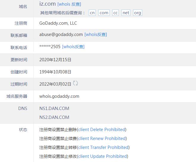查詢whois發(fā)現(xiàn),域名IZ.com注冊于1994年10月,距今已有27年歷史了。IZ.com這枚域名的品相相信不用多說,對域名有基礎(chǔ)認(rèn)知的人都清楚其價(jià)值,憑借著自身稀缺的屬性以及簡短好記易輸入的特點(diǎn),適合搭建的網(wǎng)站類型廣泛,商業(yè)應(yīng)用價(jià)值極高。